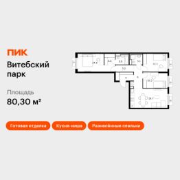 Продаётся 3-комн. квартира площадью 84,8 кв.м на 3 этаже 12 этажного дома (Корпус 6, Секция 2) проекта ПИК Витебский парк. Светлый просторный подъезд на уровне земли, функциональная планировка, большие окна, предчистовая отделка. Жилой квартал ''Витебский парк'' находится во Фрунзенском районе Санкт-Петербурга, в 15 минутах пешком от метро ''Обводный канал''. А в 2027 году всего в паре минут от проекта планируют открыть станцию метро ''Боровая''. В квартал входят 3 детских сада, школа и 7 жилых домов с дворами-парками, куда не могут зайти посторонние люди и заехать автомобили. Школа на 1250 мест и детский сад на 350 мест откроются одновременно с заселением первой очереди, это значит, что жители проекта смогут отдать своих детей в новые образовательные учреждения на территории квартала. Во дворах приятно отдыхать, знакомиться с соседями и даже заниматься йогой, а для детей мы построим детские площадки. Рядом появятся современные спортивные площадки. На первых этажах домов откроются магазины, кафе и другие сервисы. Через весь жилой район протянется широкий пешеходный бульвар для прогулок и спорта. Рядом с ''Витебским парком'' есть всё для комфортной жизни: магазины, торговые центры, фитнес-клубы, кафе и рестораны, а ещё детские сады, школы, вузы и поликлиника. Артикул 1005228 (Застройщик ООО ''СЗ ''Лиговский Сити'') [cn_sbp_1813687]