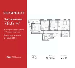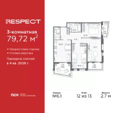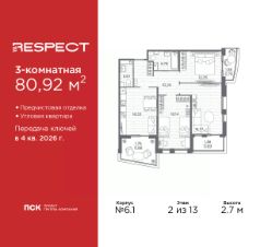 3-комн. квартира с предчистовой отделкой в ЖК ''RESPECT'' на 2 этаже. Общая площадь: 80.92 кв.м., жилая: 44.24 кв.м., площадь просторной кухни-столовой: 16.53 кв.м. Угловая квартира, идеально подойдет любителям тишины и панорамных видов. В квартире один балкон и две лоджии, один совмещенный и один раздельный санузел. Высота потолков 2.7 м. Квартира будет сдана с отделкой WHITE BOX, в которую включены следующие виды работ:- заливка стяжки,- установлена система отопления квартиры,- подготовлены потолки,- все стены выровнены, загрунтованы и отштукатурены,- электрическая проводка разведена по комнатам.Квартира будет готова к чистовой отделке. Квартира находится в корпусе 6. Дом монолитный, одноподъездный, высотой 13 этажей. На этаже 8 квартир. В подъезде 1 пассажирский и 1 грузовой лифт. Окончание строительства - 4 квартал 2026 года. Оформление сделки по договору долевого участия. В шаговой доступности от жилого комплекса имеются станции метро (расстояние по прямой): ''Лесная'' (800 м), ''Площадь Мужества'' (1.4 км), ''Выборгская'' (1.9 км), также недалеко от этого корпуса расположены станции метро: ''Академическая'', ''Политехническая''. Жилой квартал ''RESPECT'' строится на Полюстровском пр, 87, в одной из самых востребованных локаций Петербурга. В 10 минутах пешком - метро ''Лесная'' и в 10 минутах на транспорте - Петроградская сторона. Высота домов от 7 до 13 этажей. Квартиры сдаются с отделкой white box и с чистовой отделкой. На территории Respect строится школа на 1125 учащихся и детский сад на 240 мест. Запроектированы собственная газовая котельная, закрытая территория, дворы без машин и подземные паркинги с лифтами.В проекте предусмотрены трапециевидные балконы или остекленные лоджии, которые, с одной стороны, исключают монотонность фасада, являясь декоративными элементами, с другой дополнительным функциональным пространством в квартирах. Цветовая гармония фасадов каждого дома раскрывает характер квартала. Коричневый цвет клинкерного кирпича со структурой водяных штрихов — цвет уюта и безопасности, сдержанности и надёжности. Вентилируемые фасады облицованы клинкерным кирпичом. Его высокая прочность позволяет давать 100 лет гарантии на этот материал. Водопоглощение клинкерного кирпича составляет менее 5%, за счет чего у него высокая теплопроводность и прочность. В квартале запроектированы внутренние закрытые территории дворов домов без доступа автомобилей и безбарьерная среда для велосипедистов и колясок. Предусмотрены IP-домофония с функцией дистанционного открывания калиток и парадных, а также дистанционный сбор показаний счетчиков и мобильное приложение для жителей. Для безопасности жителей квартала - круглосуточное видеонаблюдение и служба охраны. В каждой квартире предусмотрены внешние корзины для кондиционеров. Вся территория квартала будет связана единой концепцией благоустройства, разработанной ландшафтным бюро L.BURO. На эксплуатируемой кровле на уровне первого этажа в домах 1 и 4 будут обустроены общественные видовые те