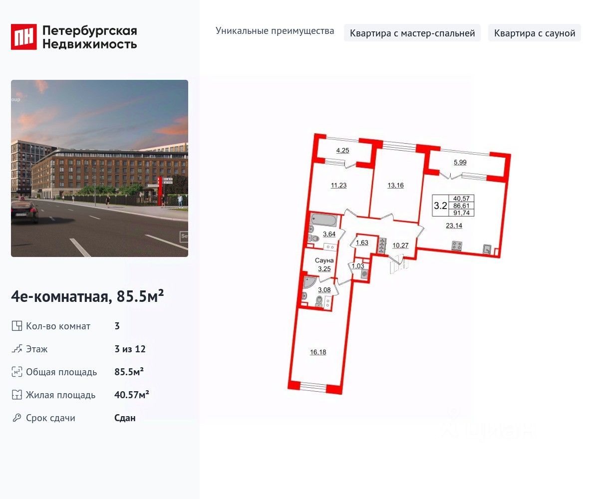 Продается уютная, семейная 3-комнатная квартира в жилом комплексе ''Amber Club'' в уютном Василеостровском районе. До метро можно добраться пешком всего за 15 минут. Мастер-спальня с собственной ванной комнатой. Самое приватное пространство в вашей квартире. Сауна в ванной комнате. Расслабьтесь и восстановите силы, как в СПА-салоне. Уникальная, функциональная европланировка, большая кухня-гостиная 23.14 м², вместительная прихожая 10.27 м². Общая площадь квартиры - 85.5 м², жилая 40.57 м², высота потолка 2.76 м. Квартира продается с отделкой ''Норд Лайн светлый комфорт''. Что особенного в ЖК ''Amber Club''? • Уникальные квартиры пентхаусы, квартиры с террасами и каминами • Премиальные виды на Малую Неву и Петровский остров • Шаговая доступность до метро (15 мин. Пешком), удобный выезд на ЗСД прямо с набережной • Amber-сквер с relax-зонами в экостиле и прогулочной аллеей • Единые входные группы со вторым светом, reception и лаунж-зонами