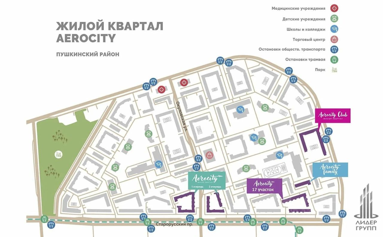 Кирпично-монолитный комплекс с уникальными планировочными решениями, в котором все квартиры предусматривают полную отделку ''под ключ''. В доме установлено лифтовое оборудование OTIS со спуском в паркинг, IP-домофония, есть охрана, выполнена коллекторная разводка отопления. Закрытый двор с детскими и спортивными площадками. В каждой парадной есть помещение для колясок и велосипедов, магазины, пекарни и ПВЗ на 1-м этаже. Две школы и два детских сада работают прямо через дорогу. Строится две поликлиники и линия скоростного трамвая. 20 минут на автобусе до двух станций метро ''Звездная'' и ''Купчино'', городская прописка. Квартиры с полной отделкой, 2 школы и 2 детских сада рядом с домом.100 машино-мест в подземном паркинге - лифты спускаются в паркинг. Скидка 1% жителям района.