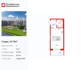 Продается уютная студия от застройщика в жилом комплексе ''Парадный ансамбль'' в престижном Московском районе.До метро можно добраться на транспорте всего за 20 минут.Удобная, классическая, функциональная европланировка, вместительная прихожая 3.1 м². Общая площадь студии - 24.26 м², жилая 18.14 м², высота потолка 3.07 м.Квартира продается с отделкой ''NORD LINE WHITE''.Что особенного в ЖК ''Парадный ансамбль''?• Инновационный Лицей Setl с оригинальной архитектурной концепцией и уникальной образовательной средой• Масштабное малоэтажное строительство в престижном Московском районе• Рекреационные зоны: парадный парк в центре квартала, ручей с собственной набережной, центральная площадь, ресторанный комплекс и пешеходный бульвар• Фасады из керамогранита и кирпича с яркими и акцентными входными группами• Две самые большие площадки Setl Kids и Setl Sport• Уникальные квартиры.High Flat на последних этажах, палисадники у квартир на первом этаже, семейные секции, квартиры с саунами и окном в ванной