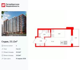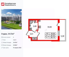 Продается уютная студия от застройщика в жилом комплексе ''Парадный ансамбль'' в престижном Московском районе.До метро можно добраться на транспорте всего за 20 минут.Удобная, классическая, функциональная европланировка, вместительная прихожая 3.01 м². Общая площадь студии - 24.53 м², жилая 18.06 м², высота потолка 2.77 м.Квартира продается с отделкой ''NORD LINE SILVER''.Что особенного в ЖК ''Парадный ансамбль''?• Инновационный Лицей Setl с оригинальной архитектурной концепцией и уникальной образовательной средой• Масштабное малоэтажное строительство в престижном Московском районе• Рекреационные зоны: парадный парк в центре квартала, ручей с собственной набережной, центральная площадь, ресторанный комплекс и пешеходный бульвар• Фасады из керамогранита и кирпича с яркими и акцентными входными группами• Две самые большие площадки Setl Kids и Setl Sport• Уникальные квартиры.High Flat на последних этажах, палисадники у квартир на первом этаже, семейные секции, квартиры с саунами и окном в ванной