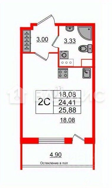 15 м² · Этаж 19 из 26