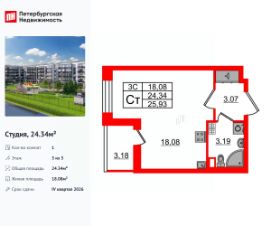 Продается уютная студия от застройщика в жилом комплексе ''Парадный ансамбль'' в престижном Московском районе.До метро можно добраться на транспорте всего за 20 минут.Удобная, классическая, функциональная европланировка, вместительная прихожая 3.07 м². Общая площадь студии - 24.34 м², жилая 18.08 м², высота потолка 2.77 м.Квартира продается с отделкой ''NORD LINE WHITE''.Что особенного в ЖК ''Парадный ансамбль''?• Инновационный Лицей Setl с оригинальной архитектурной концепцией и уникальной образовательной средой• Масштабное малоэтажное строительство в престижном Московском районе• Рекреационные зоны: парадный парк в центре квартала, ручей с собственной набережной, центральная площадь, ресторанный комплекс и пешеходный бульвар• Фасады из керамогранита и кирпича с яркими и акцентными входными группами• Две самые большие площадки Setl Kids и Setl Sport• Уникальные квартиры.High Flat на последних этажах, палисадники у квартир на первом этаже, семейные секции, квартиры с саунами и окном в ванной