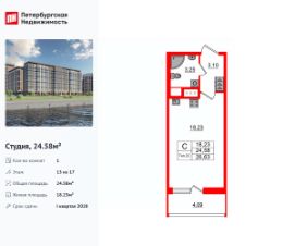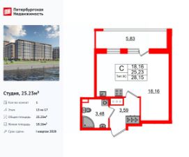 Цена со скидкой до 30% в прямой продаже от застройщика — только в этом месяце. При покупке апартаментов - паркинг за полцены. На все апартаменты действует беспроцентная рассрочка. Купите на распродаже! Покупка недвижимости в Zoom на Неве сейчас со скидкой до 30% позволит через 2 года получить доход до 6 300 000 руб. Роскошные виды на Неву. Апартамент-студия в комплексе класса бизнес-лайт Zoom на Неве на 6-м этаже. Общая площадь 22. Чистовая отделка.Zoom на Неве расположен в новом месте силы рядом с центром города на первой линии Октябрьской набережной в Невском районе, всего в 7 км от исторической части Санкт-Петербурга. Большой выбор эргономичных и максимально продуманных планировок позволит каждому найти вариант по душе. Панорамные виды на Неву, благоустроенные дворы, детская игровая комната, подземный паркинг, коммерческие зоны на первом этаже, это и многое другое делает Zoom на Неве идеальным местом для жизни. Особенности:- Панорамные виды на Неву и город,- 10 мин. до Парка Строителей, 15 мин. до Лондон-молла, Ленты, Максидома, 15 мин. до метро ''ул. Дыбенко'', 12 мин. до КАД, 10 мин. до центра,- Единая архитектурная концепция. Сдержанные и монументальные фасады в неоклассическом стиле,- Парадный лобби для жильцов. Единый вход в комплекс с администратором, зоной ресепшн и охраной, зоной для бесконтактной доставки посылок и еды,- Подземный отапливаемый паркинг с доступом из парадной,- Доступно 3 варианта отделки на выбор: черновая, предчистовая (White Box) и чистовая,- Зоны отдыха для взрослых и детей, Wi-Fi-покрытие во дворе и в паркинге, зоны для питомцев, арт-объекты и много другое. В шаговой доступности вся необходимая инфраструктура от детских садов и школ до супермаркетов и салонов красоты,- Все происходящее контролируется видеокамерами, а покой внутренней территории и безопасность ваших детей гарантируется полным отсутствием транспорта во дворах в концепции ''без машин''.