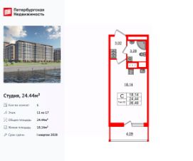 Продается уютная студия от застройщика в жилом комплексе ''Астра Континенталь'' в активно развивающимся Невском районе.До метро можно добраться пешком всего за 5 минут.Удобная, классическая, функциональная европланировка, вместительная прихожая 3.16 м². Общая площадь студии - 24.26 м², жилая 18.05 м², высота потолка 2.77 м.Квартира продается с отделкой ''NORD LINE WHITE ВК NEW''.Что особенного в ЖК ''Астра Континенталь''?• Уникальная локация 400 метров до метро, 300 метров до благоустроенной набережной• Самодостаточный квартал со всей инфраструктурой в 3-х км от центра• Впечатляющий объем благоустройства: 30 000 кв. метров рекреационных зон с променадом и гейзерными фонтанами• Масштабный парк ''Город Спорта''