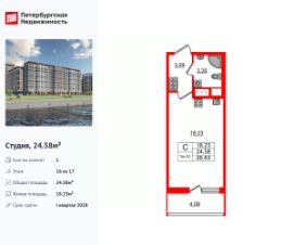 Цена со скидкой до 30% в прямой продаже от застройщика — только в этом месяце. При покупке апартаментов - паркинг за полцены. На все апартаменты действует беспроцентная рассрочка. Купите на распродаже! Покупка недвижимости в Zoom на Неве сейчас со скидкой до 30% позволит через 2 года получить доход до 6 300 000 руб. Роскошные виды на Неву. Апартамент-студия в комплексе класса бизнес-лайт Zoom на Неве на 6-м этаже. Общая площадь 23,73. Без отделки.Zoom на Неве расположен в новом месте силы рядом с центром города на первой линии Октябрьской набережной в Невском районе, всего в 7 км от исторической части Санкт-Петербурга. Большой выбор эргономичных и максимально продуманных планировок позволит каждому найти вариант по душе. Панорамные виды на Неву, благоустроенные дворы, детская игровая комната, подземный паркинг, коммерческие зоны на первом этаже, это и многое другое делает Zoom на Неве идеальным местом для жизни. Особенности:- Панорамные виды на Неву и город,- 10 мин. до Парка Строителей, 15 мин. до Лондон-молла, Ленты, Максидома, 15 мин. до метро ''ул. Дыбенко'', 12 мин. до КАД, 10 мин. до центра,- Единая архитектурная концепция. Сдержанные и монументальные фасады в неоклассическом стиле,- Парадный лобби для жильцов. Единый вход в комплекс с администратором, зоной ресепшн и охраной, зоной для бесконтактной доставки посылок и еды,- Подземный отапливаемый паркинг с доступом из парадной,- Доступно 3 варианта отделки на выбор: черновая, предчистовая (White Box) и чистовая,- Зоны отдыха для взрослых и детей, Wi-Fi-покрытие во дворе и в паркинге, зоны для питомцев, арт-объекты и много другое. В шаговой доступности вся необходимая инфраструктура от детских садов и школ до супермаркетов и салонов красоты,- Все происходящее контролируется видеокамерами, а покой внутренней территории и безопасность ваших детей гарантируется полным отсутствием транспорта во дворах в концепции ''без машин''.