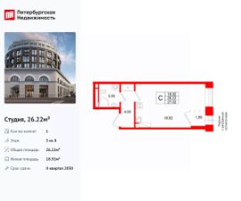 Объект забронирован клиентом!Продается 1-комн. квартира-студия от застройщика в Клубный квартал ''Ассамблея'' на 4 этаже. Квартира без отделки, новый владелец может сделать ремонт по своему проекту. Общая площадь: 25.22 кв.м., площадь гостиной 17.07 кв.м., из которых 5 кв.м. выделено под кухонную зону. Все окна выходят на одну сторону. В квартире один совмещенный санузел. Высота потолков 3.0 м. Дом монолитный, черырехподъездный, высотой 12 этажей. Квартира находится в 3-й секции в корпусе 5. На этаже 8 квартир. В подъезде 1 пассажирский и 1 грузовой лифт. Окончание строительства - 3 квартал 2028 года. Оформление сделки по договору долевого участия. В шаговой доступности от жилого комплекса находятся станции метро (расстояние по прямой): ''Горный институт'' (1.0 км), ''Василеостровская'' (1.4 км), ''Приморская'' (1.5 км), также недалеко от этого корпуса находятся станции метро: ''Спортивная'', ''Чкаловская''. ''Клубный квартал Ассамблея'' — проект бизнес-класса на Васильевском острове, в самом сердце исторического Петербурга. Комплекс состоит из пяти корпусов переменной этажности — от 7 до 12 этажей — с выразительной архитектурой в стиле неомодернизма: светлый клинкер, панорамное остекление, просторное лобби с потолками высотой почти 8 метров. Потолки — до 3,2 метров. Подземный паркинг на 667 машиномест. Комфорт и инфраструктура Проект ориентирован на комфортную городскую жизнь. В закрытом дворе — ландшафтное озеленение, современные детские и спортивные площадки. Внутренний клуб для резидентов включает коворкинг, переговорные, кинозал, фитнес и бьюти-зону. IP-домофония с просмотром камер видеонаблюдения, дистанционное открывание дверей и доступа на территорию и в парадную со смартфона и планшета, просмотр показаний счетчиков, приложение для жителей PSK Home. Локация Расположение на Васильевском острове — сильная сторона проекта. До четырех станций метро (''Горный институт'', ''Василеостровская'', ''Спортивная'', ''Приморская'') — 515 минут пешком. В шаговой доступности — зелёные зоны, культурные учреждения, в том числе сад ''Василеостровец'' и ДК имени Кирова. Основные магистрали Большой, Средний и Малый проспекты, Наличная и Уральская улицы. Съезд на ЗСД расположен недалеко от станции метро ''Приморская'', близ береговой линии. Благовещенский и Дворцовый мосты соединяют остров с центром города, а мосты Тучков, Биржевой и Бетанкура — с Петроградской стороной. Застройщик Группа компаний ПСК является одной из ведущих девелоперских компаний Санкт Петербурга. На протяжении 18 лет она возводит в Северной столице качественное жилье премиум, бизнес и комфорт-класса, социальные объекты школы и детские сады, апарт-отели и торговые центры. Является шестикратным обладателем золотого знака ''Надежный застройщик России''. #zmC0z8