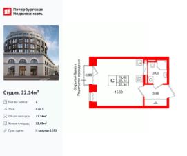 Продается уютная студия от застройщика в жилом комплексе ''Аристократ'' в уютном Василеостровском районе.До метро можно добраться пешком всего за 10 минут.Удобная, классическая, функциональная европланировка, просторная прихожая 3.46 м². Общая площадь студии - 22.14 м², жилая 15.68 м², высота потолка 2.7 м.Квартира продается с отделкой ''NORD LINE BUSINESS''.Что особенного в ЖК ''Аристократ''?• Васильевский остров - историческая локация с современными культурными кластерами• Индивидуальный облик каждого корпуса в единой архитектурной концепции• 7 парадных лобби с потолками до 7-ми метров• Цветущие сады, зеленые гостиные, фонтаны• Клуб резидентов ''Аристократ'': фитнес-клуб, коворкинг, гостиная с роялем, детский центр с кинотеатром• Технологичная среда на территории, в доме и в квартире• Премиальная отделка квартир - Nord line business