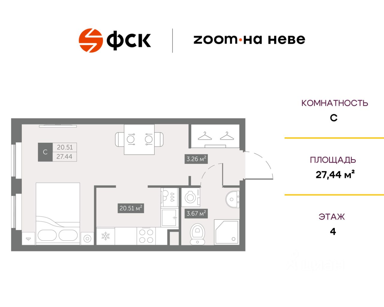 27 м² · Этаж 4 из 17