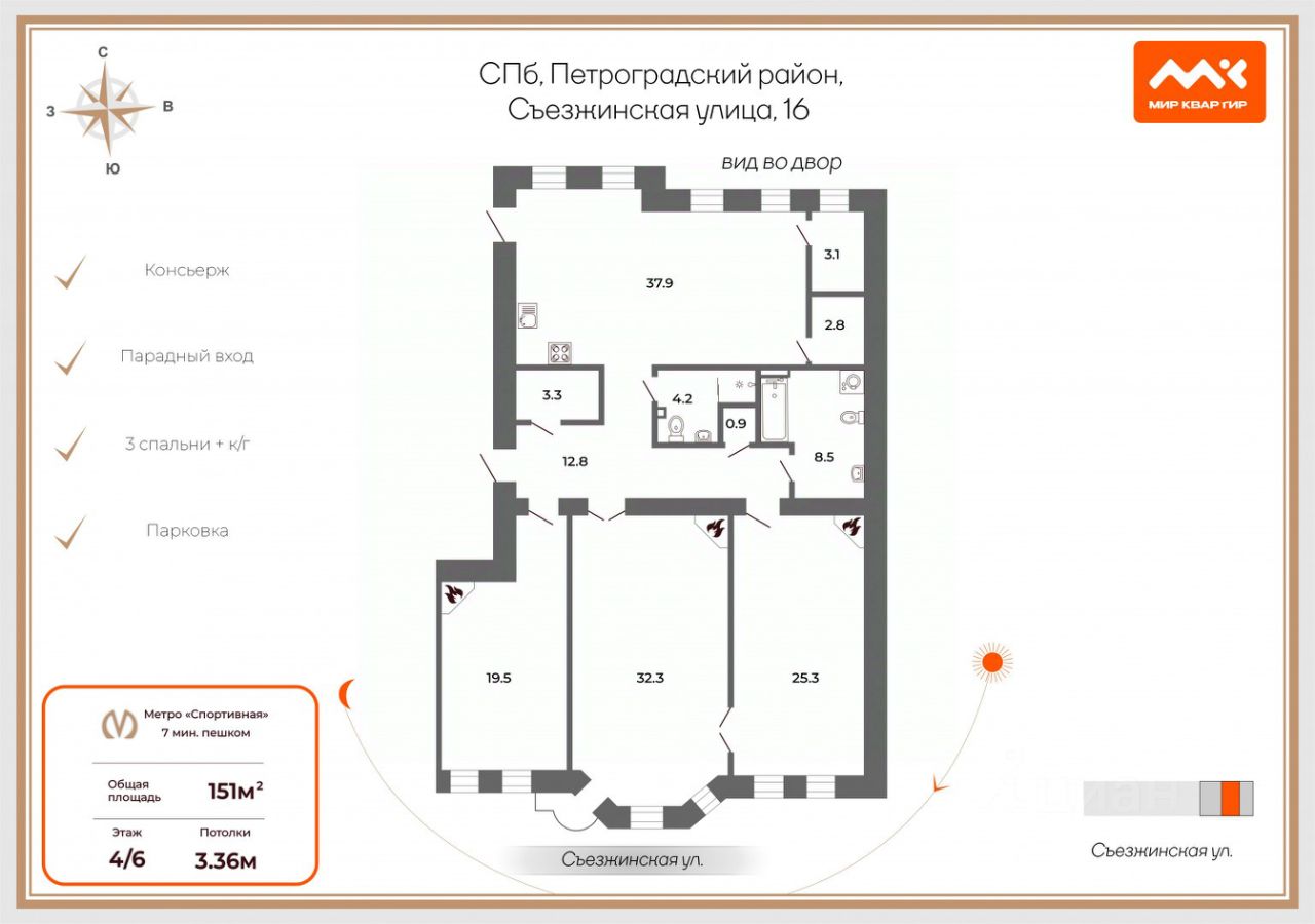 Арт. 108419440 Предлагается к продаже уникальная квартира в одном из самых статусных и архитектурно выразительных жилых комплексов Санкт-Петербурга — ЖК ''Граф Орлов'', расположенном прямо на Московском проспекте, в шаговой доступности от метро ''Московская''. Особенности квартиры, которые делают её по-настоящему исключительной:Расположена над центральной аркой здания — единственная в своём роде планировка!Просторная терраса 32 м² с захватывающим видом на Московский проспект, Дом Советов и панорамы Московского района.Высокие потолки 3,4 метра создают ощущение простора и воздуха.Кухня-гостиная 32 м² с прямым выходом на террасу — идеальное пространство для жизни и приёма гостей.Уединённая спальня, продуманная гардеробная и два санузла обеспечивают комфорт и функциональность.На этаже всего три квартиры, что гарантирует тишину и приватность.Парадная малонаселённая, соседи — статусные, обеспеченные люди.О доме и комплексе:ЖК ''Граф Орлов'' — это стиль, престиж и качество. Закрытая охраняемая территория, подземный паркинг, ухоженные дворы и архитектура в классическом стиле подчёркивают статус и вкус жильцов.Продаётся отдельно удобное парковочное место в подземном паркинге — рядом с лифтом.Звоните прямо сейчас — такие квартиры появляются крайне редко!Возможно, именно это жильё станет вашим новым, вдохновляющим домом в самом сердце Московского района!Предлагаем ПРЕМИАЛЬНОЕ обслуживание для требовательных клиентов.Оперативно организуем просмотр, предоставим полную информацию по объекту.20 лет работы с требовательными клиентами подготовили нас к решению ВАШИХ сложных задач.Будем рады знакомству! Ул. Рубинштейна, д.8.