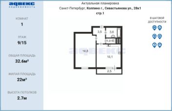 Уютная однокомнатная квартира в Колпино — готова к заселению! Продаётся светлая и современная однокомнатная квартира площадью 32,6 м² на 7 этаже комфортного 12-этажного дома в жилом комплексе ''Новое Колпино''. Квартира с качественным ремонтом по дизайн-проекту — заезжай и живи! Совмещённый санузел Утеплённая лоджия Пассажирский лифтО жилом комплексе:Дом — кирпично-монолитный, 911 этажей, с фасадами из натурального облицовочного кирпича. Вся архитектура выстроена так, чтобы создать уютные закрытые дворы, безопасные для детей и спокойные для отдыха.Инфраструктура прямо у дома:— Школа и два детских сада— Кабинет врача общей практики— Коммерческие помещения на первых этажах (магазины, кафе, салоны красоты, химчистки, банки и др.)— Благоустроенная территория: зелёные зоны, пешеходные дорожки, детские и спортивные площадки— Автомобили во двор не заезжают — парковка организована отдельноРасположение:Всего 5 минут пешком до набережной реки Ижоры — идеальное место для прогулок и отдыха.До станции метро и ж/д ''Рыбацкое'' — 20 минут на транспорте, до центра Колпино — 10 минут.Квартира передаётся с мебелью, всё продумано до мелочей — осталось только выбрать дату переезда!Меня зовут Роман, я риелтор агентства ''Этажи''.Буду рад ответить на все ваши вопросы, рассказать подробнее и организовать удобный просмотр! Звоните или пишите!Код пользователя: 84057Номер в базе: 10212152