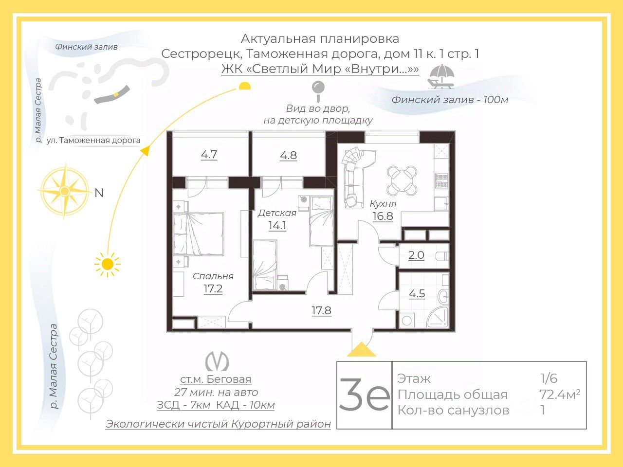 Арт. 125514918 Представляем вашему вниманию один из лучших вариантов в Курортном районе. Идеальный комплекс для жизни и отдыха в 5 минутах пешком от Финского залива. Комплекс в окружении многовекового зеленого массива. Жилой комплекс реализован по концепции ''двор без машин''. На придомовой территории проекта расположен открытый бассейн с подогревом, бар, беседки для гриля и барбекю, площадка для фитнеса, зона занятия йогой, теннисный корт, воркаут зона, а также детские площадки разделенные по возрастам. Панорамные окна. Видовые террасы- аэрарии. Развитая внутренняя инфраструктура. Территория комплекса огорожена, на ней ведется видеонаблюдение. Для владельцев автомобилей предусмотрен наземный охраняемый паркинг, на котором можно оставить катер или прицеп. Приглашаем Вас на просмотр! Прямая продажа. Предлагаем ПРЕМИАЛЬНОЕ обслуживание для требовательных клиентов. Оперативно организуем просмотр, предоставим полную информацию по объекту. 20 лет работы с требовательными клиентами подготовили нас к решению ВАШИХ сложных задач. Будем рады знакомству! Ул. Рубинштейна, д.8.