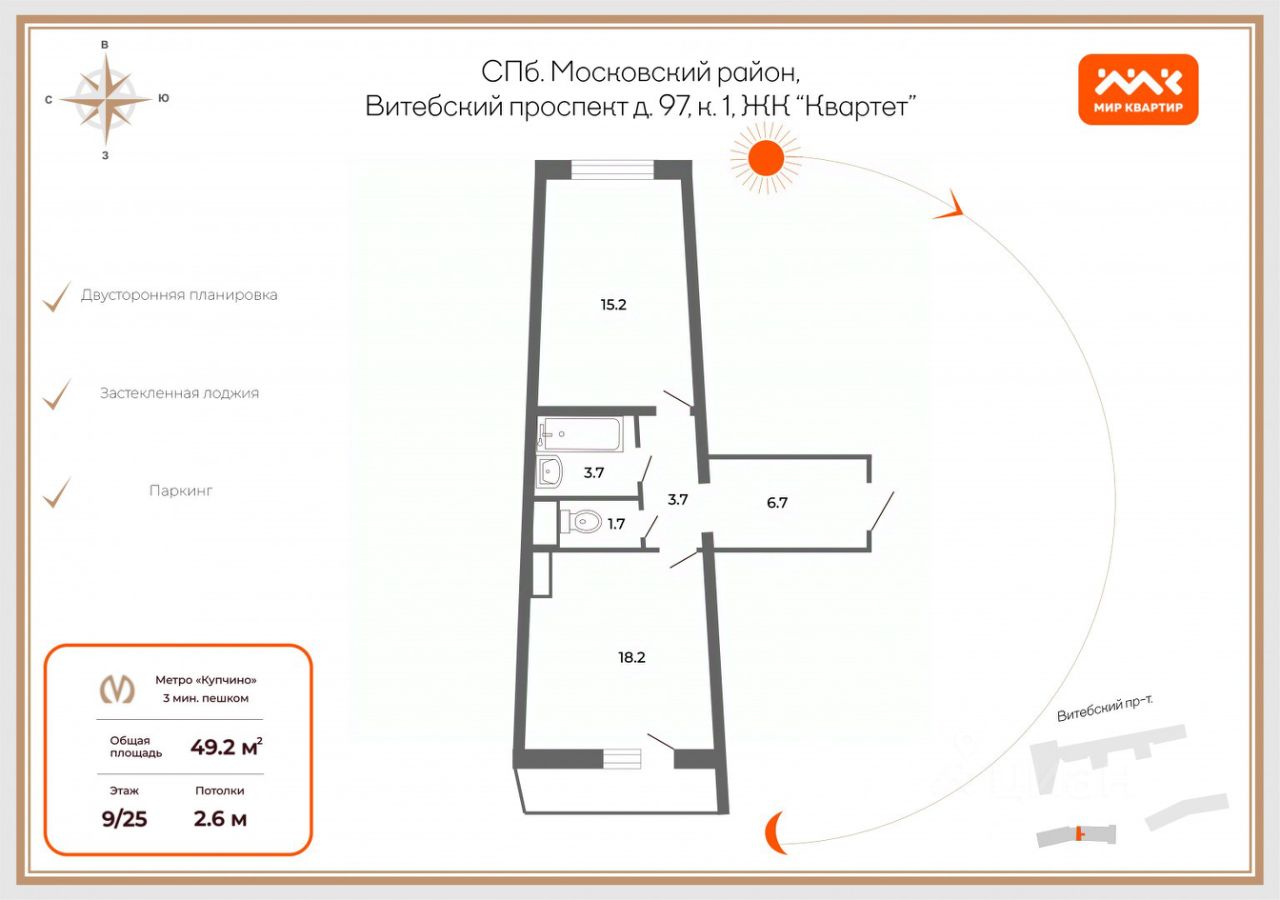 Представляем вашему вниманию 1-ую квартиру с большой кухней-гостиной 17,3 кв.м в Московском районе Санкт-Петербурга. В квартире предчистовая отделка левкас, электроразводка, выполнена стяжка пола, установлен теплый пол в санузле,подоконники, установлены отопительные приборы. Квартира находится в среднеэтажном доме комфорт -класса в районе с развитой инфраструктурой. Идеальный вариант для комфортной семейной жизни. На закрытой территории комплекса ведётся круглосуточное видеонаблюдение. Для автовладельцев предусмотрен подземный паркинг и гостевая стоянка. - В проекте разновозрастные детские площадки, зоны отдыха, зоны workout, бесплатный детский клуб Аквилон KIDS, свой детский сад и школа. - Жилой комплекс оснащен системами Умный дом и улучшенной шумоизоляцией Sound stop. Благоустройство двора выполнено от московского бюро Megabudka по концепции Двор без машин. - В пешей доступности находятся детские сады, школы, фитнес центры, кафе, магазины, сквер Раисы Штрейс, сад Дубовая Роща. - До Пулковского парка и до метро Звездная — 15 минут пешком. Прямая продажа. Один взрослый собственник. Быстрый выход на сделку. Оперативный показ. При необходимости поможем с оформлением ипотеки по максимально выгодной в данный момент ставке. Ждем ваших звонков, уважаемые покупатели!