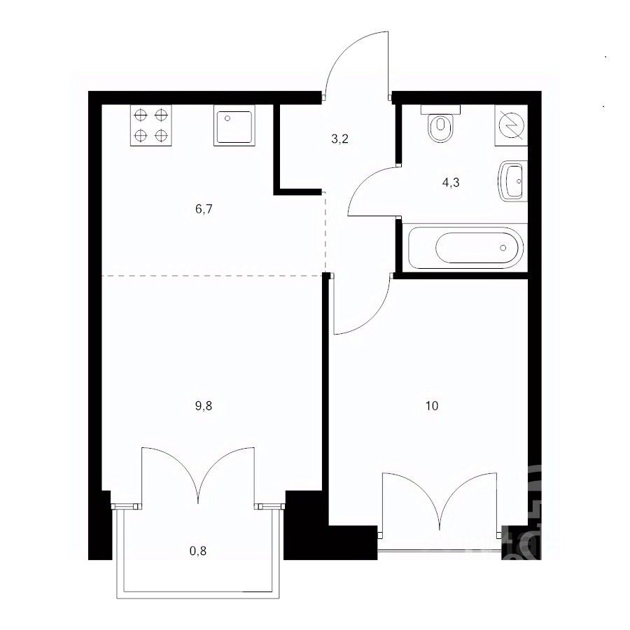 Просторная квартира-студия с тремя окнами на две стороны света , супер вид из окна, квартира отлично подойдёт для одного человека или молодой семьи. • В квартире будет светло и солнечно на протяжении всего дня, так как окна квартиры ориентированы на южную и западную стороны. • Просторная прихожая с местом для гардеробной или вместительного шкафа. • Конфигурация жилой части квартиры позволит организовать пространство максимально эргономичным образом, предусмотрев зонирование. • Слева от входа в жилую часть ниша с окном для размещения кухни и столовой. В остальной части прекрасно разместятся гостиная и спальня. • Преимущество квартиры широкая остеклённая лоджия, на которой можно обустроить дополнительное место отдыха или хранения. • Просторный совмещённый санузел позволит разместить всю необходимую мебель, сантехнику и стиральную машину.