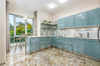 Клубный дом ''Пятый Элемент'' расположен на Крестовском острове на территории Приморского парка Победы. Дом окружен зеленью, главный фасад с внутренним крытым двором-атриумом обращен на Южный пруд. Ухоженная закрытая территория с контролем доступа и видеонаблюдением, профессиональная управляющая компания, охрана 24/7. Автономная газовая котельная, станция глубокой очистки воды.Апартаменты площадью 280.2 кв.м. расположены на третьем этаже (одна квартира на этаже). Просторные эркеры и панорамные окна на восточную и южную стороны наполняют квартиру светом и открывают великолепные виды на парк Крестовского острова. Открытые пространства и эргономичные дизайнерские решения в стиле современной классики, роскошные каменные полы, паркет и встроенная мебель из натурального дерева, современное инженерно-техническое оснащение. Территория абсолютного комфорта в гармонии с природой.Просторная гостиная площадью 71 кв. м выполнена в светлых тонах и разделена на обеденную зону и зону отдыха. Итальянская мебель TURA, MINOTTI и тёплый янтарного цвета паркет в сочетании с подсвеченными изнутри колоннами из оникса и инсталляцией-водопадом создают атмосферу спокойствия и уюта. Зона домашнего кинотеатра оборудована большим экраном и аппаратурой LINN и BOSENDORFER.Гостиная объединена с удобно расположенной кухней. В эркере кухни расположена барная стойка, позволяющая наслаждаться красивыми панорамными видами за окном. Кухня BULTHAUP, техника GAGGENAU и KUPPERSBUSCH.Помимо гостиной предусмотрена уютная комната отдыха, она же кабинет, площадью 41 кв.м. с мягкими диванами PROVASI, действующим камином, морским аквариумом и скрытой рабочей зоной.Приватная зона удалена от входа в квартиру. Просторная мастер-спальня 34 кв.м. располагает собственной ванной комнатой 17 кв.м. с гидромассажной ванной. Вместительная гардеробная комната 11 кв.м. с окном. Для детской/гостевой комнаты предусмотрен отдельный санузел с ванной. Есть хозяйственная комната для работы домашнего персонала и хранения бытовых принадлежностей. Высота потолков 3.2 м.В санузлах, холле и на кухне уложены теплые полы. Программируемое управление климатом, приточно-вытяжной вентиляцией, многоуровневым освещением, шторами, встроенными акустическими системами премиум-класса (мультирум) позволяет устанавливать различные сценарии одним нажатием. Удаленное видеонаблюдение с оповещением в случае проникновения, задымления или протечки (с автоматическим перекрытием воды). Выделенная мощность электроэнергии 38.6 кВт.Дополнительно предлагаются 2 парковочных места 6х3м в подземном паркинге.Клубный дом ''Пятый Элемент'' расположен на Крестовском острове на территории Приморского парка Победы, уникальной зеленой зоны Санкт-Петербурга. Парк включен в государственный список памятников истории и культуры регионального значения. Здесь ощущаются преимущества столичного и загородного жилья, компромисс между деловой активностью мегаполиса и спокойным отдыхом. Удобная транспортная доступность.