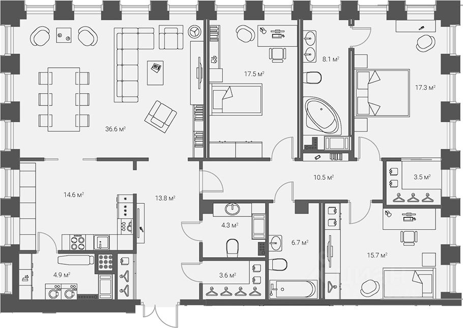 Четырехкомнатная квартира 105 кв.м. для большой семьи! Прямая продажа. Полная стоимость в договоре. Просторная кухня-столовая 16.8.кв.м. станет сердцем квартиры, здесь приятно собираться всей семьей и проводить время вместе. Гостиная 13.1 кв.м. с выходом на остекленный балкон 3.1 кв.м. При желании кухня легко объединяется с гостиной комнатой.Три спальные комнаты: 14.3 кв.м. с двумя окнами, 15.7 кв.м. и 16.0 кв.м. с местом под гардероб каждая. Вместительная прихожая 19.3 кв.м. с местом под шкаф. Два санузла: основной 4.9 кв.м. с окном и гостевой 2.0 кв.м. При желании кухня легко объединяется с гостиной комнатой, образуя светлую кухню-гостиную 29.9 кв.м. с двумя окнами и выходом на балкон. В квартире выполнена предчистовая отделка: установлена качественная входная металлическая дверь с фурнитурой, выровнены полы, стены и потолки. Выполнена разводка отопления и электроснабжения. Дом расположен в жилом комплексе комфорт-класса ''Шекспир'' с закрытой территорией. Во дворе детские площадки и места для отдыха. Есть наземный и подземный паркинг. В пешей доступности детские сады, школы, аптеки, поликлиники, магазины продуктовых сетей, кафе, ТРК ''Северный Молл'', ''Норд'', ''Гранд Каньон''. Остановка общественного транспорта в 4-х минутах ходьбы. До ближайшей станции метро ''Пр. Просвещения'' 20 минут пешком. Отличным местом для прогулок станут парки ''Сосновка'' и ''Муринский парк''. Показы в любое удобное время по предварительной записи, звоните!