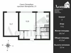 Арт. 103911902 В прямой продаже квартиру у метро! Представляем вашему вниманию квартиру, расположенную по адресу: проспект Ветеранов, дом 21.Квартира находится в кирпичном здании. Двор всегда чистый и уютный, созданы все условия для комфортного отдыха на свежем воздухе. Соседи приветливы и общительны.Квартира состоит из двух комнат общей площадью 41,5 квадратных метра. Из них 26,8 квадратных метра — жилые помещения, а 6,3 квадратных метра — кухня. Окна выходят во внутренний двор, где царит тишина и много зелени. Расположение на первом этаже делает квартиру удобной для семей с детьми. На площадке три квартиры, и секция закрывается на ключ.Санузел разделён на две части: для душа и туалета. В квартире сделан косметический ремонт. Мебель и бытовая техника остаются новым владельцам.Район, где находится квартира, хорошо развит. Рядом есть школы, детские сады, поликлиники, спортивный комплекс, магазины и кафе. Во дворе есть детская площадка и скамейки. Во дворе всегда есть свободные места для машин.До остановок общественного транспорта и станции метро можно дойти за две минуты. Это позволяет легко добраться до любой части города.Два взрослых собственника. Полная сумма в договоре. Быстрый выход на сделку, в квартире никто не проживает. Звоните, просмотры по предварительному согласованию.