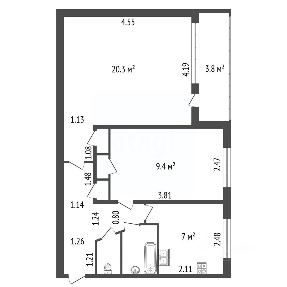 54 м² · Этаж 20 из 20