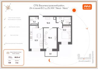 Арт. 131666322 К продаже предлагается эксклюзивная двухкомнатная квартира в элитном жилом комплексе ''Neva-Neva'', расположенном в центре исторической части Васильевского острова. Это уникальная локация, ставшая сосредоточением современных домов бизнес-класса, что гарантирует однородную социальную среду и высочайший уровень качества жизни. Жилой комплекс расположен на пересечении Среднего проспекта и 24-й линии Васильевского острова напротив сада ''Василеостровец'' и Санкт-Петербургского горного университета. Напротив дома находится премиальный фитнес-клуб ''Encore Fitness'', а до музея современного искусства ''Эрарта'' можно дойти за 8 минут. В пяти минутах ходьбы от дома находится станция метро ''Горный институт'', до Невского проспекта - 13 минут езды на автомобиле, а близость к ЗСД позволяет быстро добраться до остальных районов города. ЖК ''Neva-Neva'' — это девятиэтажный дом бизнес-класса в стиле неомодерн. В облицовке фасадов использованы натуральные материалы: кирпич, терракотовая плитка и керамогранит. Для жителей комплекса доступен подземный паркинг, консьерж-служба, круглосуточная охрана и видеонаблюдение, колясочные, закрытый двор с прогулочной зоной и детской площадкой.Квартира 66.9 м² с высокими потолками и функциональной планировкой - идеальное пространство для воплощения интерьера вашей мечты! Большие окна и балкон с панорамным остеклением наполняют квартиру светом. С высокого 7 этажа открывается панорамный вид на 24 линию Васильевского острова и сад ''Василеостровец''.Имеется готовый дизайн-проект, который будет передан новому владельцу, позволяющий при желании реализовать уже продуманный интерьер. Также собственником были закуплены строительные материалы и техника премиальных производителей, которые могут быть проданы покупателю по выгодной цене. Имеется машиноместо в подземном паркинге (одно из лучших мест - напротив лифта)!Прямая продажа, полная стоимость в договоре.Ключи у брокера. Оперативные показы. Звоните!Предлагаем ПРЕМИАЛЬНОЕ обслуживание для требовательных клиентов.Оперативно организуем просмотр, предоставим полную информацию по объекту.20 лет работы с требовательными клиентами подготовили нас к решению ВАШИХ сложных задач.Будем рады знакомству! Ул. Рубинштейна, д.8.