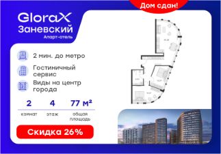 Продается 2-комн. апартамент на 7-м этаже в Апарт-отеле ''GloraX Заневский'' с сервисом 4*. Старт работы отеля - декабрь 2024 г.! Общая площадь лота составляет 43,10 кв. м, из которых 23,20 кв. м отведено под жилую. Номер апартамента - 708.Преимущества:- Апарт-отель с сервисом 4 звезды- Меблировка и техника - 2 вида доходных программ- Консьерж-сервис- Вход по ключ-карте- Прачечная для гостей на 1 этаже- Уборка номеров- Безопасная территория и изолированный внутренний двор - Pet-friendlyАпарт-отель ''GloraX Заневский'' современный отель с развитой инфраструктурой, удовлетворяющей все потребности самых взыскательных гостей. Апарт-отель ''GloraX Заневский'' располагается в одном из наиболее перспективных, районов Петербурга в 2х минутах от метро ''Ладожская'' и Ладожского вокзала, в 10 минутах от Московского вокзала и в 20 минутах от исторического центра.В апарт-отеле ''GloraX Заневский'' есть все, что необходимо для комфортной жизни, работы и отдыха. Инфраструктура, покрывающая все потребности и ожидания собственников и арендаторов. В радиусе 150 метров находятся супермаркеты с возможностью доставки продуктов прямо до дверей апартаментов.На 1000 кв. м. общественных пространств расположится уютный лобби-бар, ресторан мировой кухни на 80 человек, фитнес-зал и оборудованные коворкинги.В апартаментах ''GloraX Заневский'' выполнена современная отделка с использованием высококачественных экологичных материалов. Инновационные технологические системы, аварийные и противопожарные датчики, взаимодействие со службами быстрого реагирования гарантируют резидентам комплексную безопасность. В проекте предусмотрен подземный отапливаемый паркинг на 100 мест, куда можно спуститься на лифте прямо от дверей апартаментов.Вся информация по эксплуатации номера аккумулируется в специально разработанном приложении, не имеющем аналогов на рынке. Функциональное и удобное приложение помогает оперативно решать все возникающие вопросы в режиме реального времени. Благодаря инновационному решению по оперативным выплатам деньги от аренды поступят на ваш счет максимально быстро.Узнайте подробности в Отделе продаж.