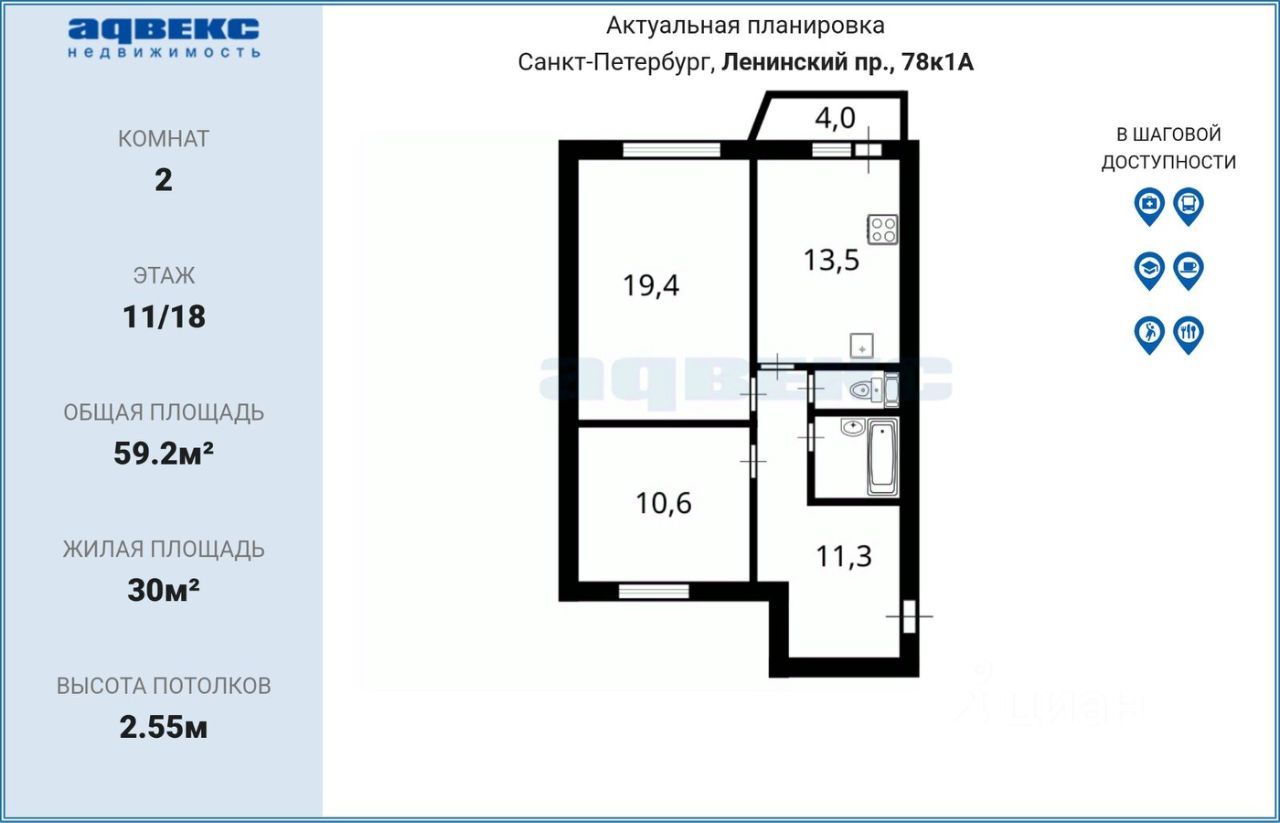 59 м² · Этаж 11 из 18
