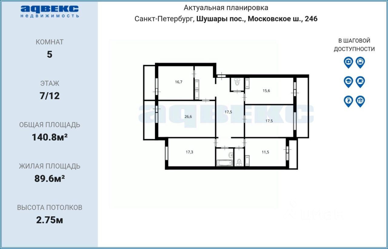 140 м² · Этаж 7 из 12
