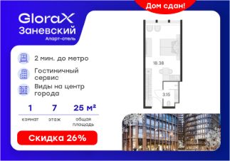 Продается апартамент-студия на 7-м этаже в Апарт-отеле ''GloraX Заневский'' с сервисом 4*. Старт работы отеля - декабрь 2024 г.! Общая площадь лота составляет 21,53 кв. м, из которых 18,38 кв. м отведено под жилую. Номер апартамента - 718.Преимущества:- Апарт-отель с сервисом 4 звезды- Меблировка и техника - 2 вида доходных программ- Консьерж-сервис- Вход по ключ-карте- Прачечная для гостей на 1 этаже- Уборка номеров- Безопасная территория и изолированный внутренний двор - Pet-friendlyАпарт-отель ''GloraX Заневский'' современный отель с развитой инфраструктурой, удовлетворяющей все потребности самых взыскательных гостей. Апарт-отель ''GloraX Заневский'' располагается в одном из наиболее перспективных, районов Петербурга в 2х минутах от метро ''Ладожская'' и Ладожского вокзала, в 10 минутах от Московского вокзала и в 20 минутах от исторического центра.В апарт-отеле ''GloraX Заневский'' есть все, что необходимо для комфортной жизни, работы и отдыха. Инфраструктура, покрывающая все потребности и ожидания собственников и арендаторов. В радиусе 150 метров находятся супермаркеты с возможностью доставки продуктов прямо до дверей апартаментов.На 1000 кв. м. общественных пространств расположится уютный лобби-бар, ресторан мировой кухни на 80 человек, фитнес-зал и оборудованные коворкинги.В апартаментах ''GloraX Заневский'' выполнена современная отделка с использованием высококачественных экологичных материалов. Инновационные технологические системы, аварийные и противопожарные датчики, взаимодействие со службами быстрого реагирования гарантируют резидентам комплексную безопасность. В проекте предусмотрен подземный отапливаемый паркинг на 100 мест, куда можно спуститься на лифте прямо от дверей апартаментов.Вся информация по эксплуатации номера аккумулируется в специально разработанном приложении, не имеющем аналогов на рынке. Функциональное и удобное приложение помогает оперативно решать все возникающие вопросы в режиме реального времени. Благодаря инновационному решению по оперативным выплатам деньги от аренды поступят на ваш счет максимально быстро.Цена указана при 100% оплате или стандартной ипотеке. Узнайте подробности в Отделе продаж.