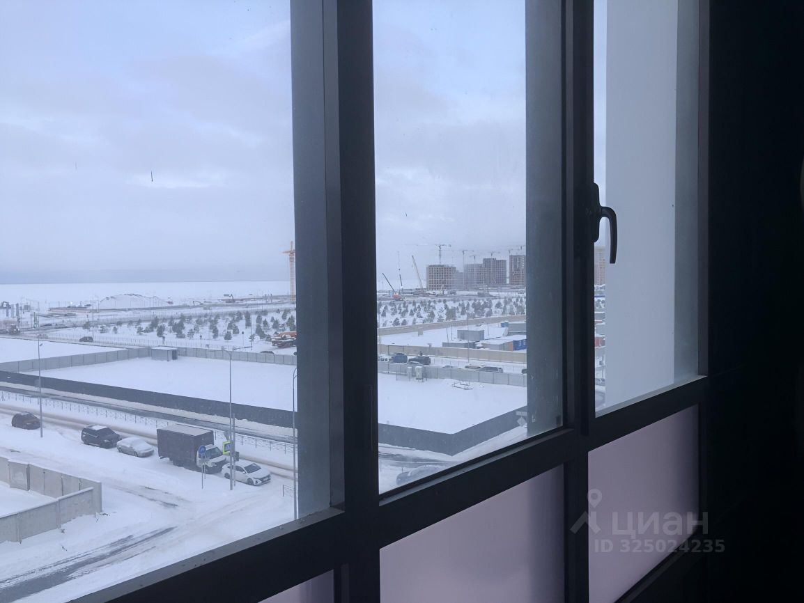 Квартира — студия от застройщика Лср. Окно- тройной стеклопакет и качественная входная дверь, обеспечивают отличную звукоизоляцию. Вид из окна на залив — фото 1.