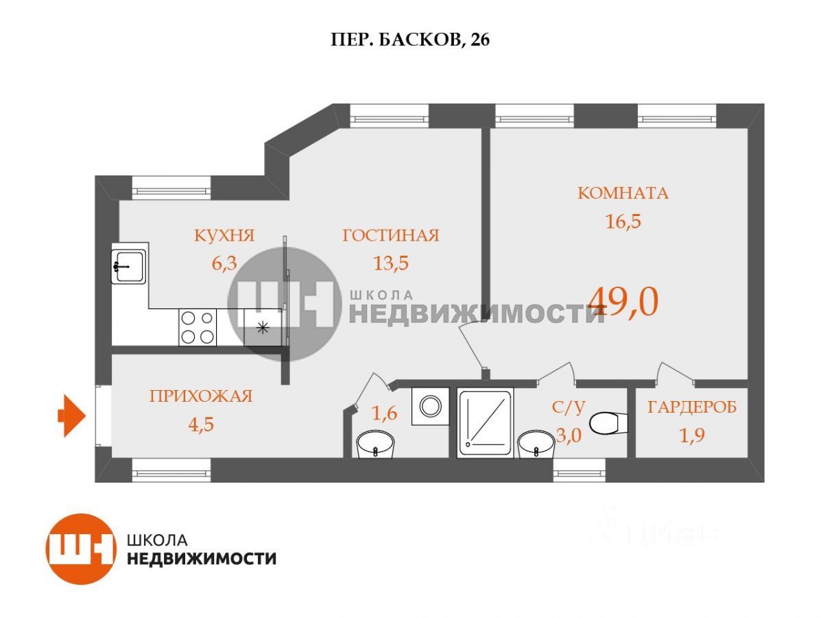 1-к, Басков переулок, 26