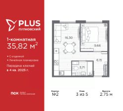 Продается 1-комн. квартира с отделкой в ЖК ''PLUS Пулковский'' на 2 этаже. Общая площадь: 36.14 кв.м., жилая: 9.66 кв.м., площадь просторной кухни-столовой: 16.3 кв.м. Все окна выходят на одну сторону. В квартире один совмещенный санузел. Высота потолков 2.75 м. Все квартиры в проекте сдаются с полной чистовой отделкой. Выполняется в двух стилистических решениях светлый стиль и темный современный стиль. Вам остается только расставить мебель.Важное преимущества отделки от застройщика в гарантии на все работы и в том, что фактическая стоимость полной отделки распределяется в ипотечных платежах при покупке в ипотеку. Дом монолитный, многоподъездный, высотой 5 этажей. Квартира находится в 5-й секции в корпусе 2. На этаже 7 квартир. В подъезде 1 грузовой лифт. Начало строительства - 4 квартал 2023 года. Окончание строительства - 4 квартал 2025 года. Оформление сделки по договору долевого участия. ЖК ''PLUS Пулковский'' расположен в престижном Московском районе на пересечении Пулковского и Волхонского шоссе, по которым можно быстро добраться до КАД и до станций метро Московская и Звёздная. Поблизости расположены дворцово-парковые ансамбли Пушкина, Павловска, Петергофа, Гатчины, Ломоносова, а также вся торговая и развлекательная инфраструктура: ТК Лето, Outlet Village Pulkovo, Пулково-3, гипермаркеты Лента, Окей, Metro. На территории комплекса будут построены средняя образовательная школа на 825 мест с двумя бассейнами, 2 детских сада на 220 мест каждый. В детских садах тоже будут бассейны. Кроме этого будет построен медицинский центр для взрослых и детей. Во дворах буду оборудованы спортивные и безопасные детские площадки, на первых этажах домов будут расположены коммерческие помещения. Для автолюбителей будут подземные и наземный паркинги. Для жителей домов будет доступно ''приложение жителя'', которое предоставит такие возможности:— дистанционное открытие дверей в парадную и на территорию комплекса,— просмотр изображений с видеокамер,— контроль за показаниями счетчиков,— коммуникация с УК.Показания всех счетчиков будут собираться дистанционно.В квартирах будет выполнена коллекторная разводка отопления в стяжке пола от коллекторов в межквартирных коридорах. Застройщик ЖК ''PLUS Пулковский'' - группа компаний ПСК, которая является одной из ведущих девелоперских компаний Санкт Петербурга. Более 16 лет она возводит в Северной столице качественное жилье премиум, бизнес и комфорт-класса, социальные объекты школы и детские сады, апарт-комплексы и торговые центры и является четырехкратным обладателем золотого знака ''Надежный застройщик России''. #zMZ5g0