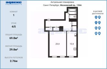 1-к, Московский проспект, 72 корп. 2 Показать на карте