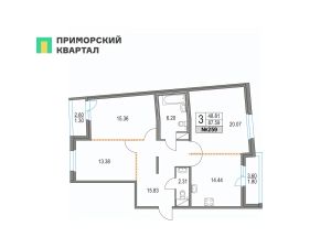 Продается 3 - комнатная квартира общей площадью 82.03 кв.м., на 3 этаже в построенном и заселенном корпусе 31 (год сдачи: 2022 г.)Квартиры в ЖК ''Приморский квартал'' продаются напрямую от застройщика ''Мегалит - Охта Групп'' по договору купли-продажи.Приморский квартал - проект современной квартальной застройки комфорт-класса в 400 метрах от станции метро ''Пионерская''. Квартал включает 13 жилых домов, высотность которых варьируется от 12 до 25 этажей, а также различные объекты социальной инфраструктуры. Проект реализуется двумя партнерами инвестиционно-строительными компаниями ''Мегалит'' и ''Охта Групп''. В состав квартала войдут три детских сада на 460 мест и общеобразовательная школа на 1500 мест. Проектом предусмотрено большое количество коммерческих помещений для размещения всего, что нужно для комфортной городской жизни - магазины, аптеки, кафе, салоны красоты и другое.Приморский квартал расположен в Приморском районе, на территории, ограниченной Коломяжским проспектом, проспектом Испытателей, Богатырским проспектом и улицей Матроса Железняка.