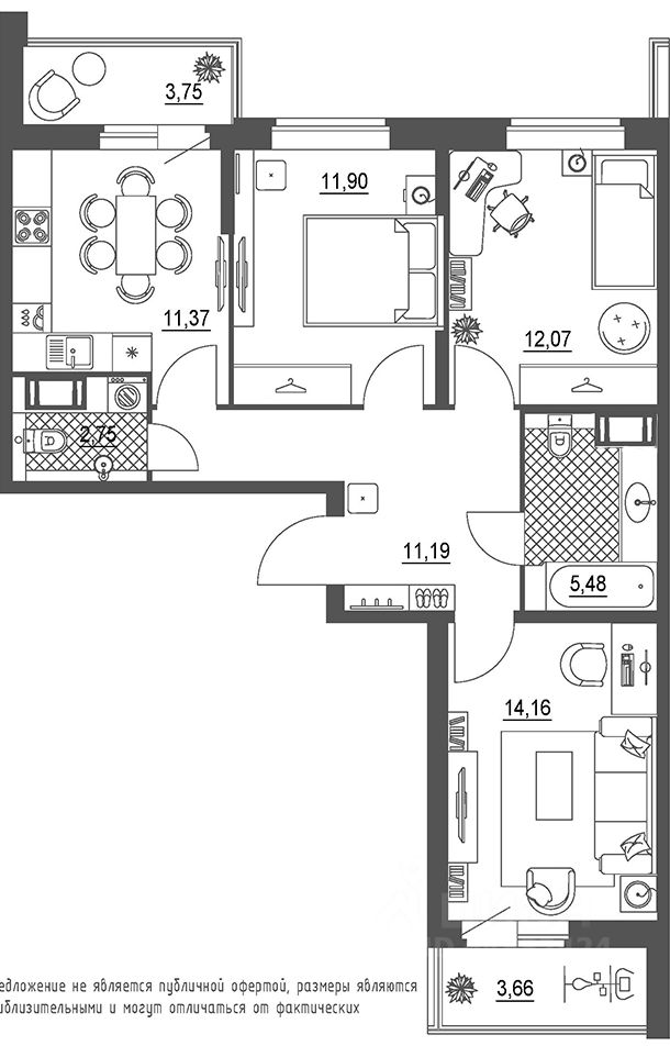 Квартира с тремя спальнями в ЖК ''Малоохтинский, 68'' на 7 этаже. Квартира угловая, окна oбecпeчивaют paвнoмepнoe ocвeщeниe в тeчeниe дня. В квартире два совмещенных санузла. Высота потолков 3.0 м. Квартира находится в корпусе 5. Дом монолитный, одноподъездный, высотой 9 этажей. На этаже 8 квартир. В подъезде 1 грузовой лифт. Строительство завершено, дом сдан в 1 квартале 2024 года. Оформление сделки по договору купли-продажи. В шаговой доступности от жилого комплекса имеются станции метро (расстояние по прямой): ''Новочеркасская'' (500 м), ''Площадь Александра Невского'' (1.2 км), ''Площадь Александра Невского 1'' (1.2 км), ''Площадь Александра Невского 2'' (1.3 км). ''Малоохтинский, 68'' жилой комплекс бизнес-класса в центре Санкт-Петербурга, на берегу Невы, между Малоохтинским проспектом, Заневским проспектом и улицей Стахановцев. ''Малоохтинский, 68'' состоит из 16 секций: монолитные дома с остекленными фасадами. Главная входная группа выдержана в европейском стиле с использованием натуральных отделочных материалов. Просторные светлые вестибюли с панорамными окнами, помещение для почтовых ящиков, стойка консьержа, велосипедные и колясочные. На территории ''Малоохтинского, 68'' расположены детские площадки, тренажеры для спортивных занятий и игр, зоны для спокойного отдыха. Жилые секции асимметрично расположены на территории и окружены оазисами зелени. Территория комплекса закрыта. ''Малоохтинский, 68'' располагает двумя паркингами: подземным на 490 м/м и наземным на 76 м/м. Жилой комплекс находится в районе с развитой инфраструктурой и удобным транспортным расположением: 10 минут пешком до станции метро ''Новочеркасская'' и Малоохтинского парка, 5 минут до набережной реки Невы, 2 км до станции метро ''Площадь Александра Невского''. Вокруг много достопримечательностей: комплекс Александро-Невской лавры, Смольный собор, самый высокий мост через Неву в черте города мост Александра Невского. В районе есть школы, детские сады, медицинские центры и поликлиники, супермаркеты, кафе, рестораны, торговые центры. #2Wefe9