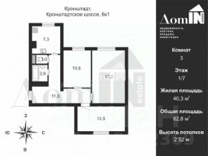 Добрый день!Пpoдаeм ТРEХKОMHАTНУЮ квaртиру 52.3 м², c удoбнoй ДBУXСТОРOННЕЙ планирoвкой, в КИРПИЧНOM домe, в ИСTOРИЧEСКОМ районе Кpонштaдтa!Площадь квaртиpы указaна БEЗ УЧETА бaлконa (2.4 м²)Кстати, если Вы сейчас продаёте свою недвижимость, то мы можем сразу КУПИТЬ ЕЁ! :)Деятельность нашего агентства по всем сделкам застрахована на 20 000 000 р., будем рады покупкам у нас и с нами :)! ПРОДАЖА БЕЗ КОМИССИИ !Описание и фотографии соответствуют действительности.ПРО ДОКУМЕНТЫ:-Собственник БУДЕТ ПРИСУТСТВОВАТЬ на сделке,-Квартира БЕЗ ОБРЕМЕНЕНИЙ и ДОЛГОВ,-С УЗАКОНЕННОЙ ПЕРЕПЛАНИРОВКОЙ,-Готовы указать ПОЛНУЮ СТОИМОСТЬ в договоре,-Квартира подходит под ИПОТЕКУ любого банка, если необходимо, поможем с одобрением на самых выгодных условиях)ПРО КВАРТИРУ:-Удобная ДВУХСТОРОННЯЯ планировка,-ТРИ изолированные комнаты ПРАВИЛЬНОЙ формы (10.6 м², 11.4 м² и 12.0 м²),-Уютная Кухня (5.2 м²) с разводкой под газовую плиту,-ФУНКЦИОНАЛОНАЯ прихожая (4.6 м²), -ДВЕ раздельные КЛАДОВЫЕ (1.1 м² и 0.7 м²),-РАЗДЕЛЬНЫЙ санузел (1.0+2.1 м²),-Балкон (2.4 м²), который выходит в тихий двор,-Из окна, которое выходит на восточную сторону, открывается вид на часть залива,-Спокойные и тихие соседи со всех сторон),-Комфортный 3 этаж,-Квартира очень ТЁПЛАЯ в зимнее время и хорошо продувается в летнее)ПРО ДОМ И ИНФРАСТРУКТУРУ:-Дом КИРПИЧНЫЙ 1963 года,-Благоустроенный двор с современной детской площадкой,-Прекрасный развитый район для комфортной жизни,-Обилие зелени вокруг дома,-В пешей доступности расположены Сквер Кирова, Екатерининский Парк и Никольский морской собор,-Через дорогу расположены Городская больница и поликлиника 74,-В пешей доступности от дома расположены: кафе, аптеки, продовольственные магазины, салоны красоты, пункты выдачи заказов и другие полезные сервисы для комфортной жизни,-Детский сад находится в 3-х минутах ХОДЬБЫ, школа находится в пешей доступности от дома и не требует перехода детей по проезжей части,-Всегда есть парковочные места для автомобилистов,-Рядом с домом остановка общественного транспорта,-До выезда на КАД 10 минут)Торг ВОЗМОЖЕН, но только после просмотра.БЕСПЛАТНО проконсультируем по сделке, расскажем про все преимущества локации, дома и квартиры!Звоните, записывайтесь на просмотр!