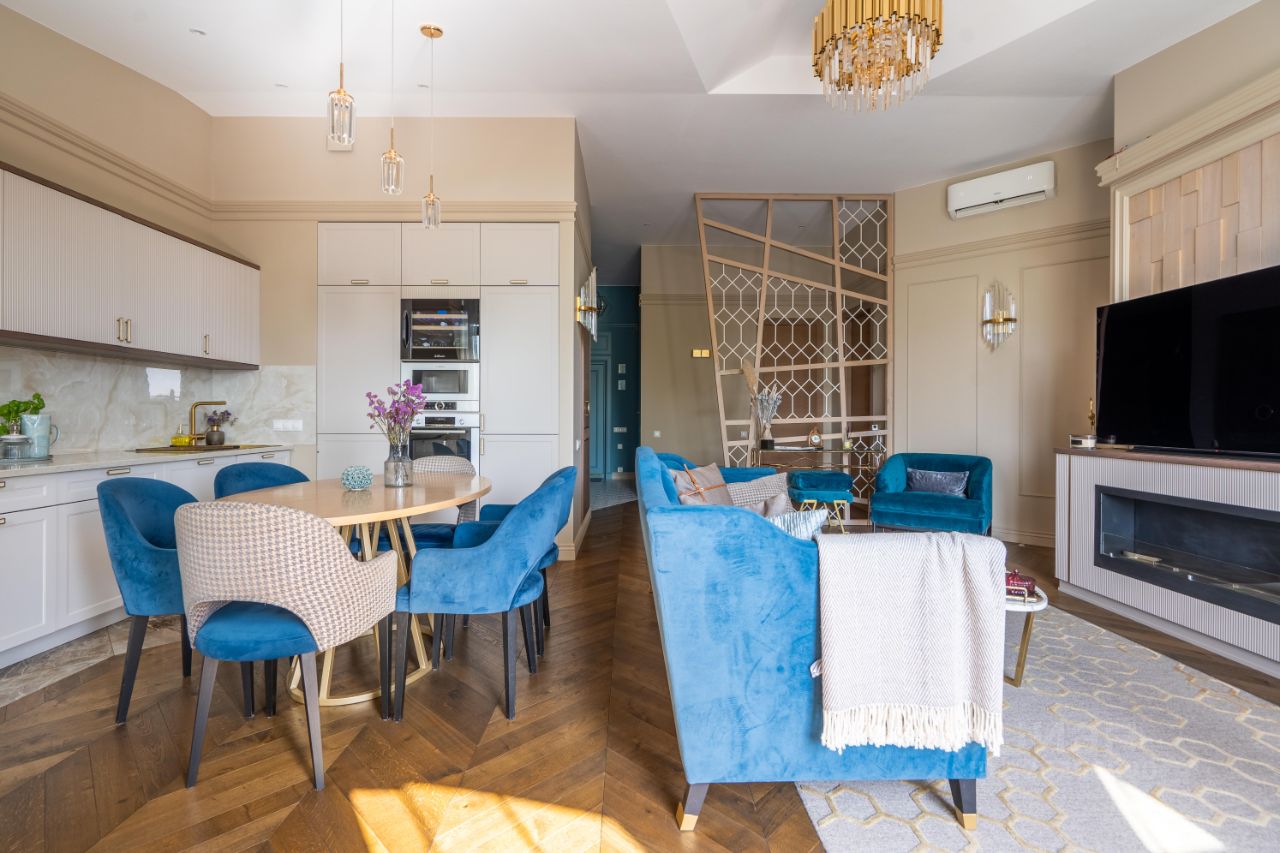 Квартира с авторским интерьером на Дибуновской, 34 108 м² | 3 комнаты | 5 этаж | В продаже — стильная квартира с дизайнерской отделкой в престижной локации Приморского района, на улице Дибуновская. Функциональная планировка: просторная кухня-гостиная 50 м², спальня и полноценная детская комната. Интерьер и отделка: Квартира выполнена по индивидуальному дизайн-проекту. В отделке использованы премиальные натуральные материалы: Полы: паркетная доска, французская ёлочка + керамогранит (Испания, Италия) Стены: окраска, мягкие панели, обои, декоративные молдинги В детской — авторская роспись, комбинированная отделка Тёплый пол в холле и обоих санузлах Кухня и техника: Кухонный гарнитур: МДФ эмаль + шпон, столешница — агломерат Встроенная техника Bosch Стиральная и сушильная машины — Asko Мебель и предметы интерьера: Основная мебель — выполнена на заказ по проекту (МДФ, шпон, массив дуба) Кресла и консоль — Importhome Журнальный стол — натуральный мрамор Инженерия: Кондиционер в кухне-гостиной Вытяжная вентиляция Брендовая сантехника (Италия, Германия) Пространство и вид: В квартире — панорамные и мансардные окна, благодаря которым помещения наполнены естественным светом в течение всего дня. Окна выходят на малоэтажную застройку, а вокруг — зелень, тишина и приватная городская среда без визуального шума. Адрес: ул. Дибуновская, 34 5 этаж, квартира светлая, с окнами на две стороны До Елагина острова можно дойти пешком Отличная транспортная доступность В районе полностью развита социальная инфраструктура: школы, детские сады, поликлиники, магазины, спортклубы, набережная Квартира полностью готова к проживанию. Документы готовы, показ по договорённости. Редкий формат — сочетание локации, качества и площади.