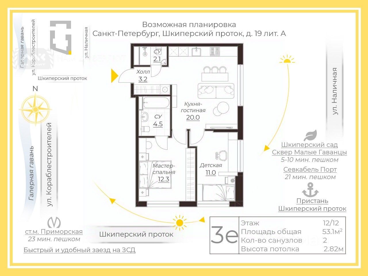 Арт. 111862372 Видовая квартира! Продаю квартиру в жилом комплексе Шкиперский, 19. Дом сдан, ключи получены, право собственности зарегистрировано. Жилой комплекс расположен в пешей доступности от метро Приморская и новой станции - Горный институт, 15 минут до Севкабель порта и красивой благоустроенной набережной с прекрасными видами на залив, автобусные остановки в 2 минутах от дома. Около дома своя школа и детский сад от застройщика. Квартиру специально выбирали с хорошим видом на город и Галерный ковш с ориентацией юго-восток. В комплексе благоустроенный двор-сад, подземный паркинг, кладовые, колясочные, на первых этажах кофейни и магазины. Район активно расстраивается и обрастает новой инфраструктурой, в ближайшем будущем недалеко от дома будет выезд/заезд на ЗСД, благоустроена набережная Галерной гавани и небольшой сквер у дома. Квартира с подчистовой отделкой ''white box'', большие окна в пол, в квартире два санузла и просторная кухня-гостиная. Высота потолков 2.82 м. Ипотека возможна. Успейте купить квартиру мечты!