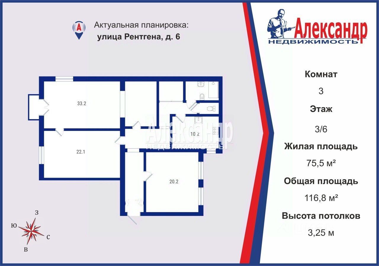 3-к, Рентгена, 25 Показать на карте
