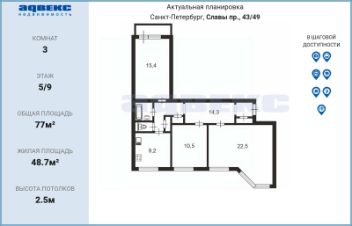О КВАРТИРЕ:Продается просторная трехкомнатная квартира с лоджией, без ремонта, расположенная на третьем этаже девятиэтажного дома 1967 года постройкиОбщая площадь квартиры составляет 54.4 кв. м, из которых 37 кв. м отведено под жилое пространство, а кухня занимает 5,5 кв. м.В квартире установлены новые стеклопакетыИНФРАСТРУКТУРА:Расположение дома одно из главных преимуществ. Всего в 5-7 минутах ходьбы находится станция метро ''Проспект Славы'', ''Международная''.Это обеспечивает быстрое транспортное сообщение со всеми районами города и позволит вам легко добраться в любую точку города.В непосредственной близости расположены все объекты инфраструктуры: школы, детские сады и магазины. Это делает район идеальным выбором для семей с детьми и для тех, кто ценит свое время. ДОКУМЕНТЫ:2 взрослых собственника, никто не прописан, все документы готовы, обременений нет. Поможем в одобрении ипотеки по сниженной ставке.Пишите, звоните, записывайтесь на просмотрКод пользователя: 182962Номер в базе: 10490841