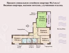 Срочная продажа! Отличная инвестиция (по рынку стоит дороже)!Продаем уникальную семейную квартиру 86,4 кв.м.!Эксклюзивная планировка евро-формата с видом на р.Нева.1 собственник, прямая продажа, полная цена в договоре.О квартире.+ Уникальная квартира выводили в продажу под нас: большая кухня гостиная с выходом дымохода для установки камина, изолированные спальни, зоны гардеробных, светлые комнаты с двумя окнами, высокие потолки, выделенное помещение под сауну лучшее предложение на рынке.+ Улучшенная отделка: сан.узлы выполнены в керамограните под потолок, установлена качественная фурнитура (розетки, ручки), в сан.узлах - система теплых полов.+ Большеформатные окна нашей квартиры выполнены из облегченного алюминиевого профиля и соответствуют высоте потолков (такой формат окон только на 12 этажах).+ Кухня-гостиная 22 кв.м. с панорамными окнами в пол создают особую атмосферу, а наличие дымохода воплотит мечты о настоящем камине.+ Кухня-гостиная с видом на р. Нева это приятный морской Питерский близ, вдохновляющие рассветы и впечатляющие виды на город.+ Комната 13,8 кв.м. привычной прямоугольной планировки, но благодаря большеформатному окну и видовым характеристикам комната становится особенной.+ Комнаты 10,8 кв.м. и 15,8 кв.м. благодаря наличию двух окон, максимально насыщенны солнечным светом, что так ценно в сером Петербурге.+ В квартире отлично спланировано пространство: выделено два помещения под гардеробные, есть ниши под установку систем хранения.+ Два раздельных сан.узла, с помещением под сауну (предустановлено термостойкое стекло), либо же данное пространство отлично подойдет под постирочную зону.+ На этаже всего 5 квартир, что также сказывается на комфорте жизни.+ Для жителей есть удобная система хранения автомобилей - подземный паркинг, куда вы сможете спустить в домашних тапочках - доступ прямиком из парадной.+ Территория жилого комплекса закрыта от посторонних, есть зона лобби для проведения переговоров.+ По истине уникальный дом вы находитесь в эпицентре событий и мест, при этом камерность и комфорт проживания стоит на первом месте.О районе.+ Новый садик в соседней парадной.+ Лучшие школы и садики города в пешей доступности.+ Автомобилистов порадует удобный заезд на ЗСД.+ Квартира подходит под ипотеку любых банков.+ Показ в любое удобное время, по предварительной договоренности.Звоните.Буду рада Вам помочь.Виктория.