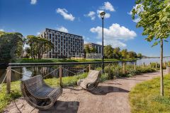 **Данная цена ограничена по времени**Покупалась у застройщика. Собственник будет на сделке лично. Две больших спальни 21м2 и 17м2 с вместительными гардеробными. Вид из спален на реку Ждановку и Лахта-центр. В квартире восемь(!) окон. Два санузла: один с ванной, другой с душевой. Продуманные системы хранения. Элегантная кухня-гостиная 36м2 оснащена качественной европейской техникой (остается новому владельцу). Также продается машиноместо в подземном паркинге под большой внедорожник.РЕДКИЙ ВАРИАНТ НА РЫНКЕ:1. Чистые документы (2 взрослых собственника, на основе ДДУ).2. Без ''нюансов'' по эксплуатации (все инженерные системы полностью собраны ''под себя'', в т.ч. изначально заменены все окна и радиаторы отопления, а на входе в квартиру установлены 2 ступени фильтров очистки воды).3. Уникальное расположение - вы никогда не стоите в пробках на подъезде к дому. Прямо у дома причалы прогулочных катеров и ухоженный парк с прудом. 4. Размер коммунальных платежей как в обычном доме. Круглосуточная охрана при входе в парадную. 5. Респектабельное окружение.