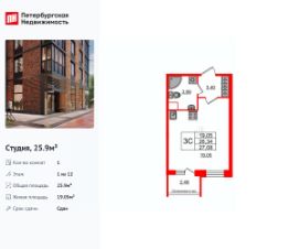 Продается просторная студия от застройщика в жилом комплексе ''Сенат'' в престижном Московском районе.До метро можно добраться пешком всего за 20 минут.Удобная, классическая, функциональная европланировка, просторная прихожая 3.4 м². Общая площадь студии - 25.9 м², жилая 19.05 м², высота потолка 2.77 м.Квартира продается с отделкой ''Норд Лайн светлый комфорт''.Что особенного в ЖК ''Сенат''?• Престижный Московский район• Авторская архитектурная концепция• Центральная входная группа с ресепшен и лаундж-зонами• Променад с воздушным мостом и просторными зонами отдыха• Зимний каток, площадки SetlKids и уютные дворы-патио• Инновационный Лицей Setl с оригинальной архитектурной концепцией и уникальной образовательной средой