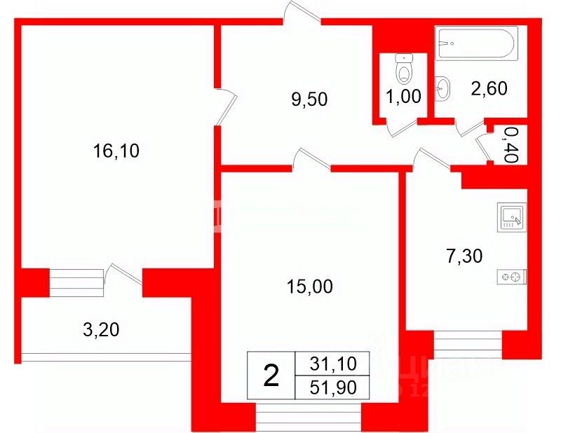 51 м² · Этаж 9 из 9