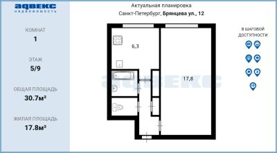 1-к, Брянцева, 7 корп. 1 Показать на карте