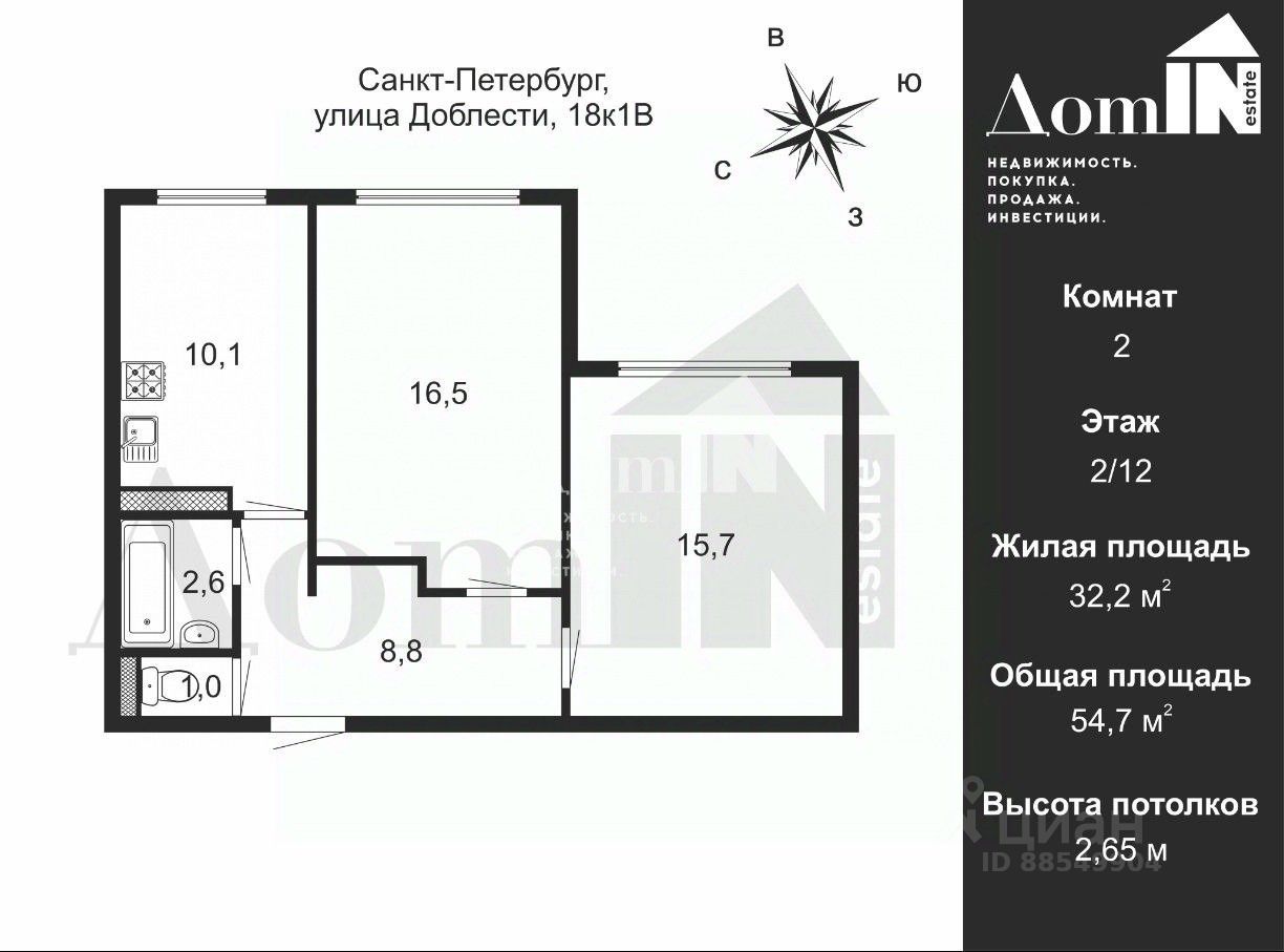 Свободная продажа! Продаю светлую и очень перспективную квартиру общей площадью 47,3 м² в жилом комплексе на улице Доблести. Локация: Санкт-Петербург, ул. Доблести, д. 18, корп. 1, лит. Ж. Развитая инфраструктура района, хорошая транспортная доступность. ???? Главные преимущества: Высокий этаж: 8 этаж из 12. Отличный вид, много света и свежего воздуха. Простор: Большая общая площадь (47,3 м²) и жилая (26,6 м²) дают массу возможностей для планировки. Свет, тишина и вид: Окна основных помещений выходят во двор — тихо, спокойно, светло и зеленый вид с приличной высоты. Балкон: Есть утепленный балкон (лоджия) площадью 10.70 м² — ваша личная зона отдыха с хорошим обзором. Большая кухня: Просторная кухня 8,5 м² — можно легко организовать и кухонную зону, и столовую. Чистый холст: Квартира продается без ремонта. Это ваш шанс создать современное жилье с нуля, под свои вкусы и потребности, без переплаты за чужие решения. ???? Точная планировка и площадь: Общая площадь: 47,3 м² Жилая площадь: 26,6 м² + 10,7 (комната с балконом) +15,9 (широкая и длинная ) Кухня: 8,5 м² Техническое состояние: Квартира , требуется ремонт. Финансы и сделка: Собственник: 2 взрослых Продажа: Свободная от проживания и обременений. Рассмотрим любой вид оплаты (субсидии, ипотека, наличные). Торг: Возможен адекватный торг для серьезных и готовых к сделке покупателей. Идеальный вариант для тех, кто ищет просторную квартиру в хорошем районе и хочет сделать ремонт для себя! Звоните, чтобы договориться о просмотре и оценить вид из окон! Номер объекта: #1/772514/1176