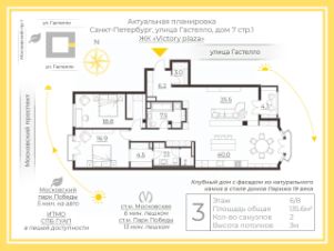 Арт. 127257627 Victory Plaza - ваш новый уровень жизни в Московском районе.Добро пожаловать в пространство, где преимум начинается с деталей, а гармония статуса, архитектурной эстетики соединяются с абсолюьным комфортом.Месторасположение дома особенно тем, что находится в окружении тихого сквера на ул. Гастелло, которая огибает дом с обеих сторон, поэтому вокруг спокойно и тихо. Клубный дом (128 квартир) создает пространство для жизни, где компромиссы не нужны.Квартира находится на 6 этаже, имеет двухстороннюю планировку: окна выходя во внутренний двор и в сторону улицы Гастелло. Свободная планировка включает три комнаты, 2 санузла, постирочную, гардеробную, кухню с окнами в пол и французким балконом - символом утонченного вкуса и легкого доступа к свежему воздуху.Также иммется готовый дизайн-проект в случае необходимости.Вход в парадуную осуществлется через лобби с консьерж-сервисом, где вам помогут решить бытовые вопросы, и закрытый от посторнних камерный внутренний двор с ландшафтым озелеленением. Во вдоре расположены скамейки, беседка в виде ротонды, вазоны с цветами, подвесные люстры, что создает уютную приватную атмосферу для вашей ежедневной жизни. В подземном паркинге имеются машинноместа за отдельную плату. Когда есть решение инвестировать в качество своей жизни и желание иметь ''свой дом'' в центре городской динамики - звоните.
