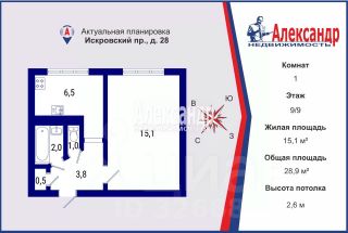 2-к, Искровский проспект, 26в Показать на карте