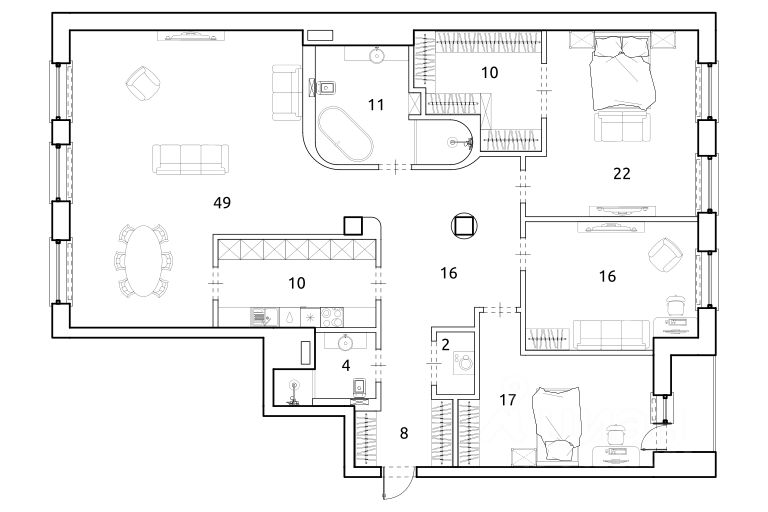 Лот: 76415. Вашему вниманию предлагается потрясающая квартира в тихом и уютном жилом комплексе на Петроградской стороне вблизи Каменного острова. Отличительной чертой планировки данной квартиры является логика и прекрасная дизайнерская мысль. Есть чёткое разделение на гостевую и приватную зоны. Из панорамных окон гостиной и кухни открывается потрясающий вид на Каменноостровский проспект. Немецкая кухня Leicht оснащена техникой Miele. В отделке квартиры использованы предметы ведущих мировых брендов: Minotti, Porada, Poltrona Frau, Longhi и многие другие. Пол в квартире выстелен массивной доской кокоса. Функциональная планировка включает в себя также просторную спальню с гардеробной, детскую комнату и кабинет. Все окна из приватной части квартиры выходят в тихий внутренний двор. ЖК Каменноостровский 64к2, созданный по проекту легендарной архитектурной мастерской Евгения Герасимова и возведённый строительной компанией ''Стройкомплект'', безусловно, не оставит настоящих ценителей современной архитектуры равнодушными. Большие панорамные окна идеально сочетаются со строгим фасадом, отделанным натуральным камнем. Особенно эффектно фасад выглядит в вечернее время за счёт подсветки. Техническое оснащение комплекса полностью соответствует его уровню. Малошумные лифты, приточно-вытяжная система вентиляции, охрана, система допуска, а также теплый отапливаемый паркинг (2 удобных м/м в собственности, продаются отдельно). На рынке критически мало предложений с похожим наполнением и качеством исполнения.