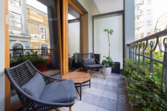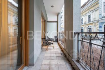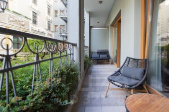 Предлагаются к продаже эксклюзивные апартаменты с собственной террасой в проекте премиум класса ''Монферран''. Дизайнерский ремонт, натуральные материалы, высокие потолки и панорамное остекление подчеркивают статусность и премиальность резиденции в элитном комплексе рядом с Исаакиевским собором.Апартаменты площадью 83,7 кв. м, расположенные на 1 этаже, имеют выход на террасу и во внутренний двор. Резиденция включает в себя спальню, гостиную и зону кухни со встроенной техникой компании Miele, одним санузлом и гардеробной для хранения одежды. Отделка в санузле выполнена из мрамора и оникса, установлена сантехника производителя Villeroy Boch. В спальне и кухне-гостиной напольное покрытие сочетает ковролин и керамогранит, отделка стен выполнена из шёлковых обоев. Системы хранения из массива дерева подчеркивают элегантность и благородство внутренней отделки апартаментов.Современная инфраструктура дома обеспечивает апартаменты системой кондиционирования и вентиляции, пожарной сигнализации, видеонаблюдения, службы ''консьерж 24/7'' и профессиональной охраной. Бесшумные лифты с отделкой из дерева и текстиля со спуском в отапливаемый подземный паркинг.