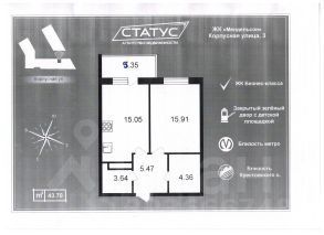 Просторная евродвухкомнатная квартира в ЖК ''Мендельсон''. Рядом ст.м. Чкаловская 7 минут пешком. В квартире выполнен качественный ремонт.Санузел совмещенный с душевой кабиной. Есть гардеробная. Большой балкон, выход на балкон из кухни. На балконе пол - плитка. В прихожей, санузле и на кухне пол - керамогранит, в комнате - паркетная доска. Квартира продается без мебели. Вид из окон во двор - закрытая территория, круглосуточное видеонаблюдение. Развитая инфраструктура - магазины, рестораны, места для прогулок и отдыха. Удобный выезд на ЗСД Один взрослый собственник. Полная сумма в договоре.